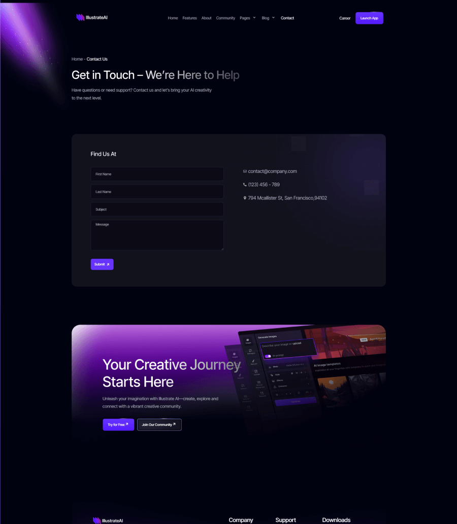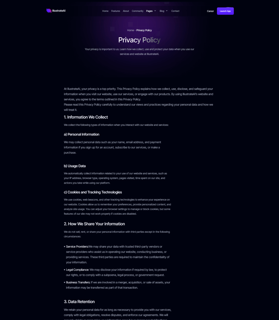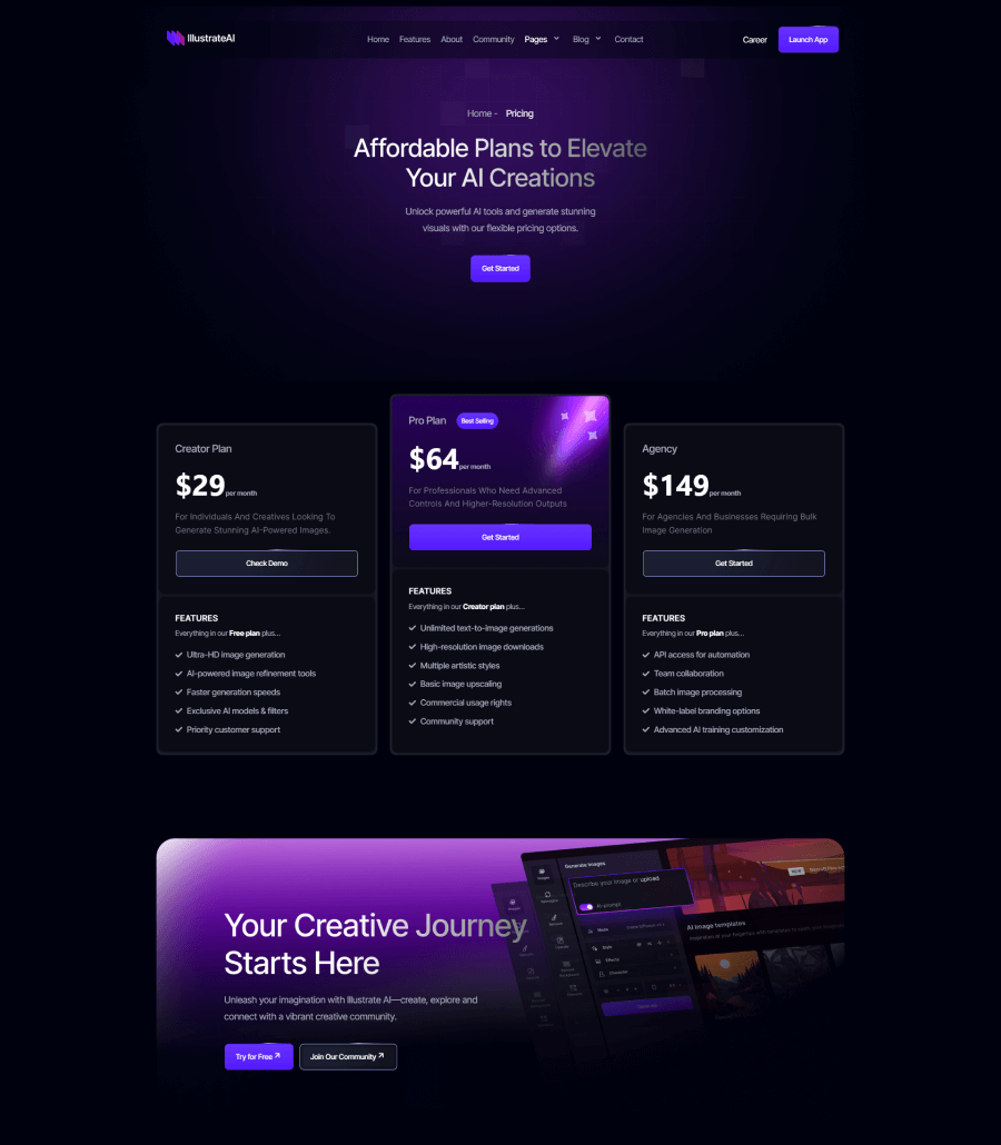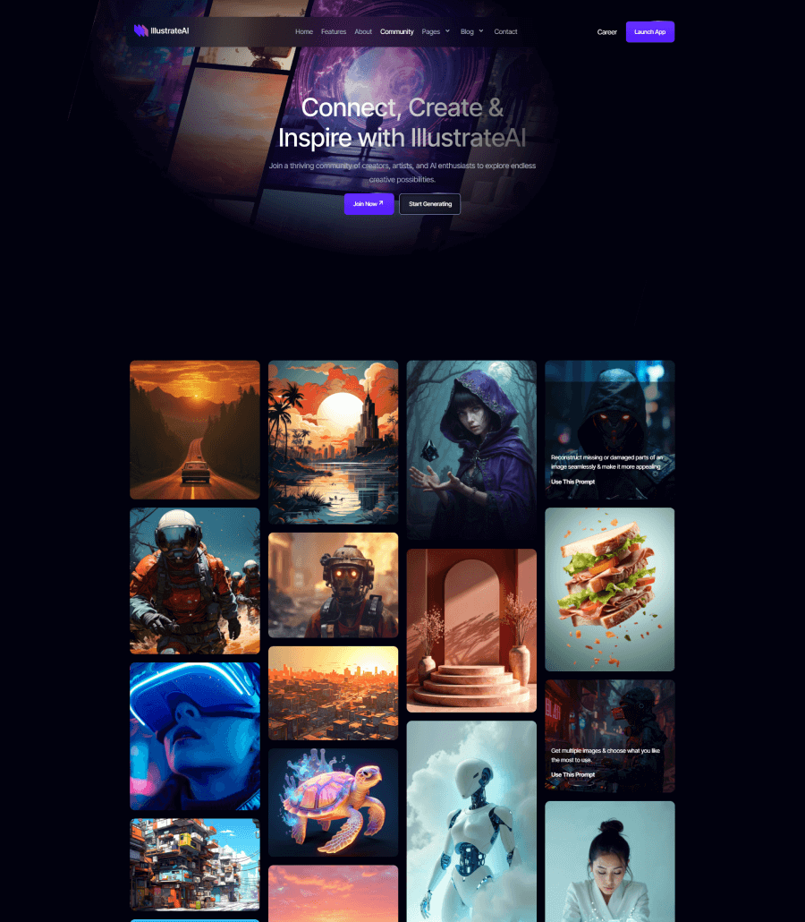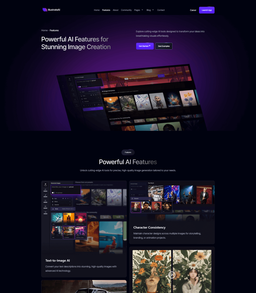 A sleek and futuristic website created for an AI-driven photo generation platform, focusing on visual impact, clarity, and technological confidence. The layout highlights the tool’s capabilities, sample outputs, and workflow steps through structured sections and a sharp visual hierarchy. The result is a modern, imaginative digital presence that positions IllustrateAI as a cutting-edge player in the creative AI space.